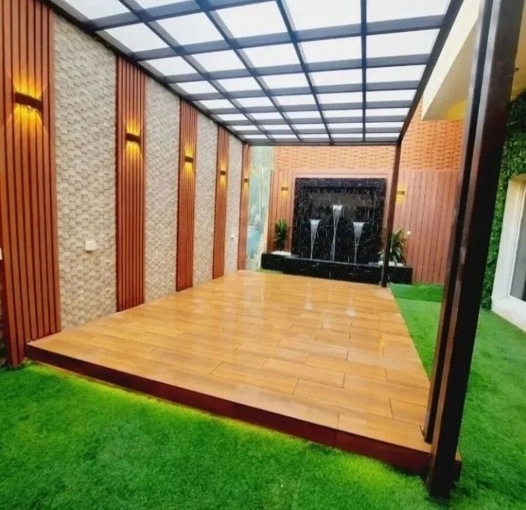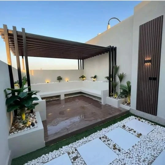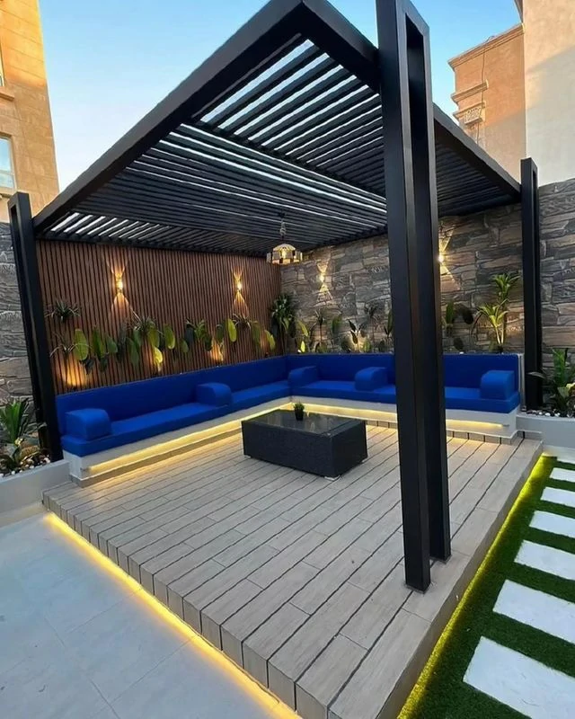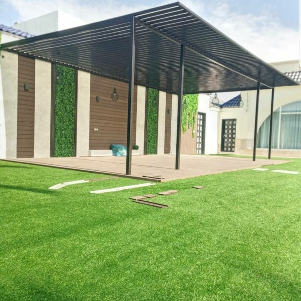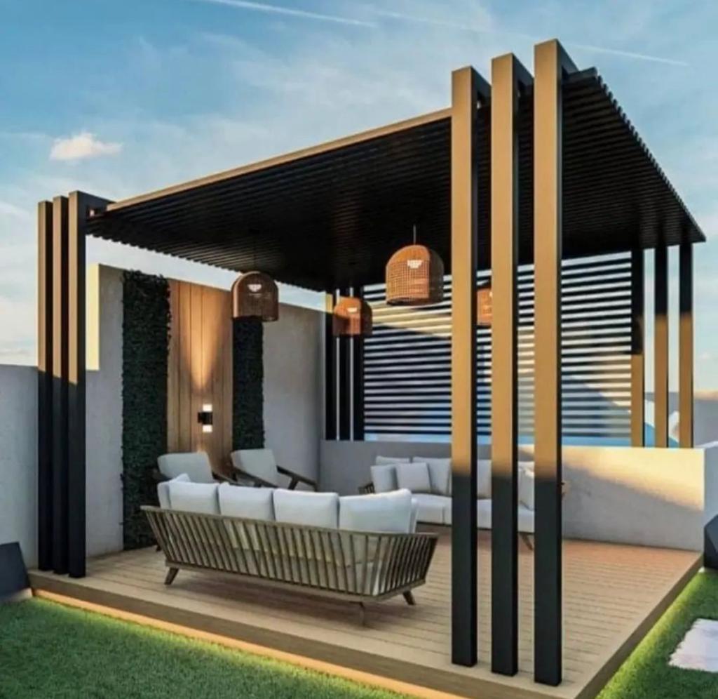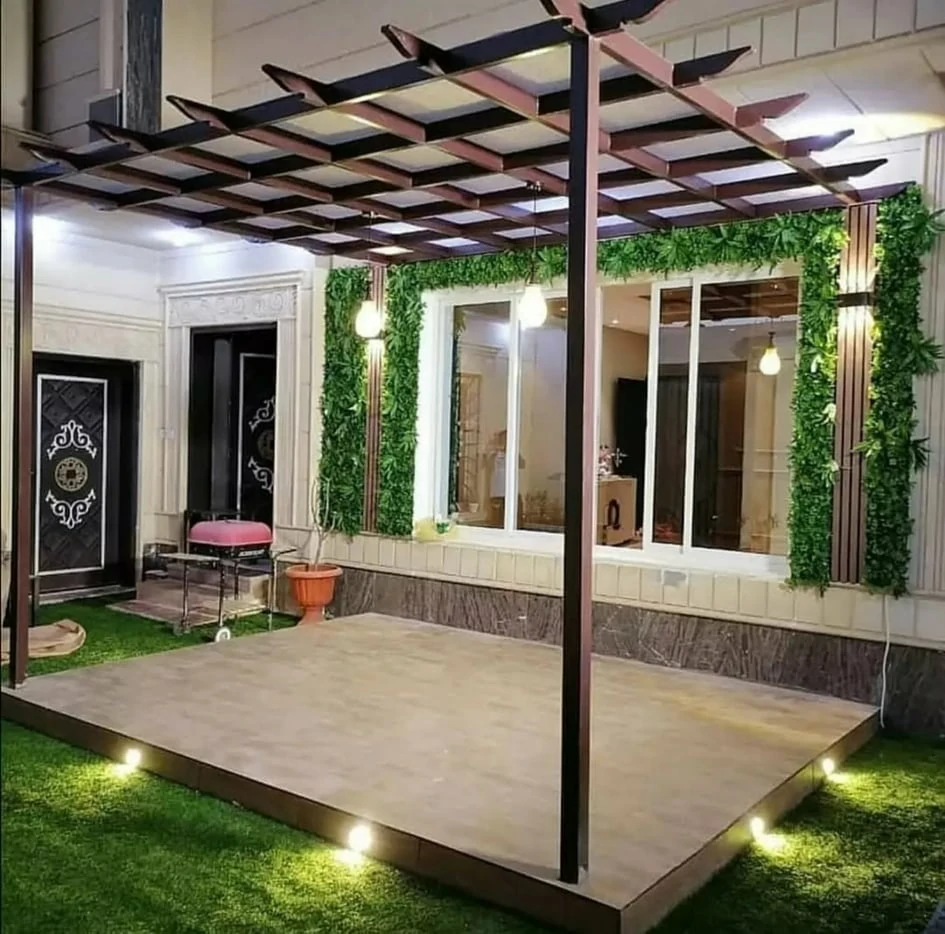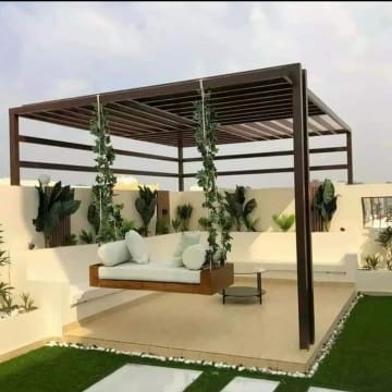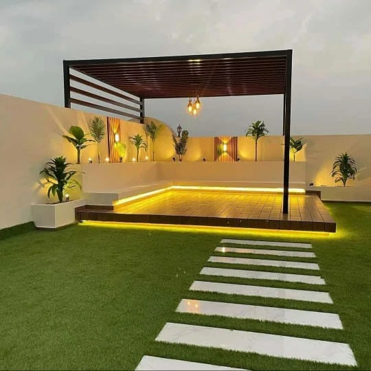 • مظلات خشبية: تضفي لمسة جمالية طبيعية وتندمج بشكل جميل مع البيئة الخضراء.